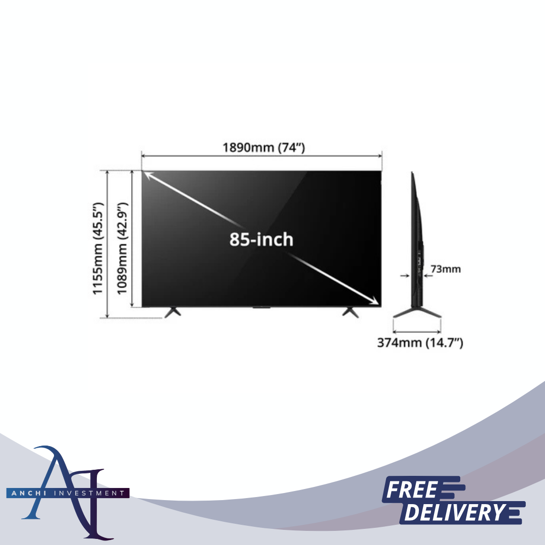 Product Dimension with Stand (W x D x H): 1890 x 374 x 1155mm (74” x 14.7” x 45.5”)